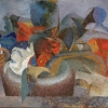 The objects surrounding the bouquet are barely discernible in the overall chaos of colors and forms. They seem to lose their individuality, dissolving in a common emotional impulse.