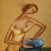The composition of the painting is simple and laconic, but at the same time very expressive. The vertical arrangement of the woman’s figure creates a feeling of stability and balance. The lines of the body and the bowl, echoing each other, give the painting dynamism and liveliness.
