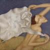 At the center of attention is a female figure, as if tearing herself free from the captivity of white fabric. Her body, executed in a stylized manner, radiates strength and energy. Arms outstretched, as if trying to break free from the shackles, and a head thrown back, speak of a desire for the sky, for freedom.