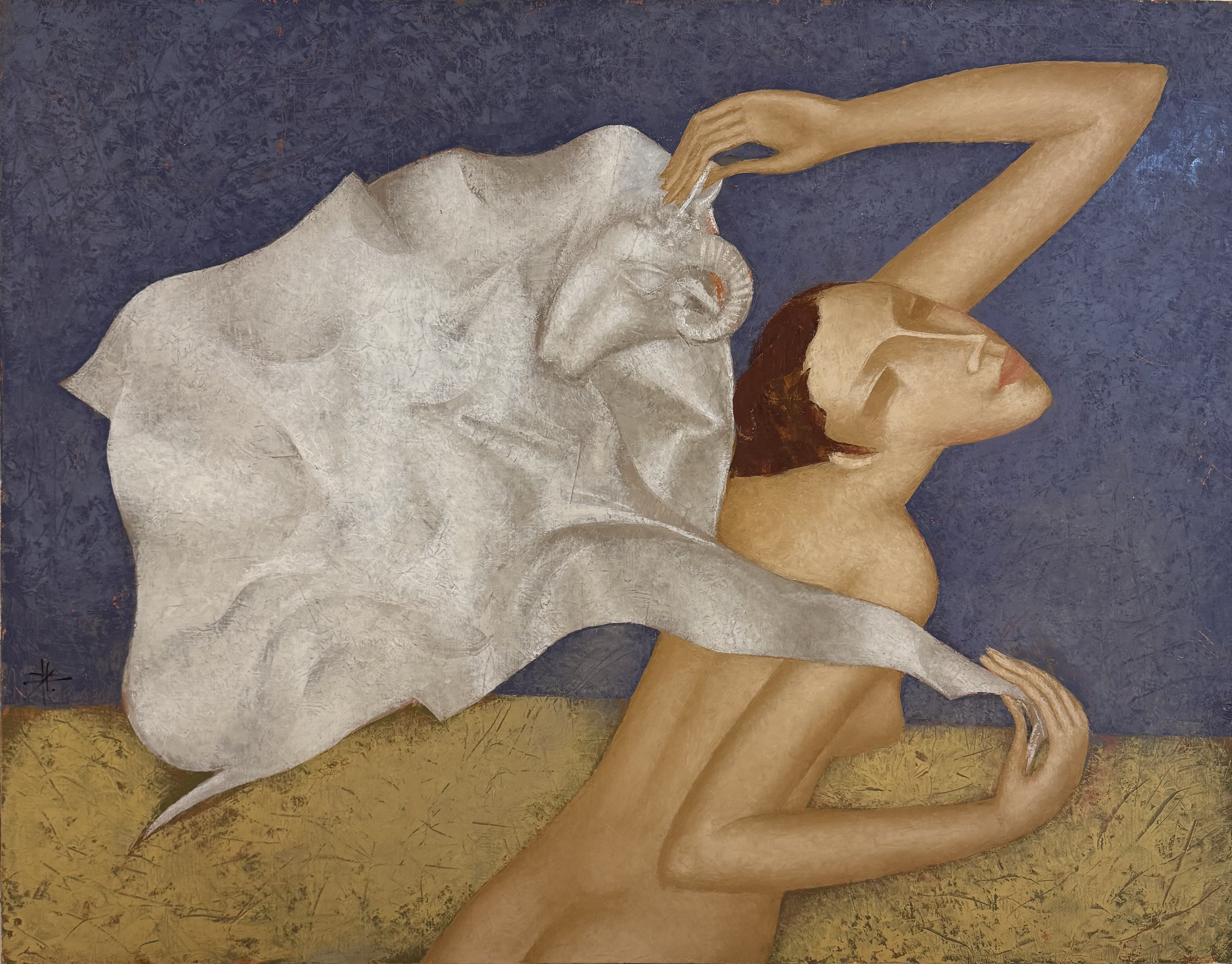 Nikolai Reznichenko’s painting “Golden Fleece” is not just an image of a woman breaking free from the embrace of fabric, but a powerful allegory dedicated to the theme of transformation, the search for oneself, and overcoming life’s obstacles. The artist creates a dynamic and expressive composition, inviting the viewer to reflect on the strength of the human spirit, on the capacity for change, and on how important it is to be able to break free from the past in order to move forward. This canvas is not about a specific heroine, but about each of us, about our path to freedom and self-knowledge.