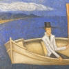 At the center of attention is the figure of a person sitting in a boat and holding an oar in his hands. His pose expresses calmness and determination, but at the same time, a certain detachment can be read in his gaze, as if he is immersed in his thoughts and does not notice the beauty of the world around him.