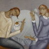 The background of the painting is minimalistic and restrained. Calm tones create a feeling of intimacy and privacy, allowing the viewer to fully focus on the main characters.