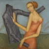 The composition of the painting is simple and laconic, yet very expressive. The vertical arrangement of the figure creates a feeling of stability and balance. The jacket, located in the left part of the canvas, balances the figure of the woman, creating a harmonious whole.