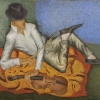 The composition of the painting is simple and laconic, but at the same time very expressive. The figure of the man is located in the center of the canvas, which emphasizes his importance and dominant role. The horizontal position of the figure creates a feeling of peace and tranquility.