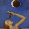 Above the woman’s head is a lunar eclipse, a phenomenon that is both mesmerizing and frightening. Part of the lunar disk is hidden in shadow, which symbolizes a temporary loss of light, a period of uncertainty and internal doubts. The eclipse can be interpreted as a metaphor for the difficulties and trials that a person goes through on their life path.