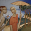 Nikolay Reznichenko’s “Golden Fish” is more than a portrait of two figures in a stylized landscape; it is a tableau rich with symbolism, inviting contemplation on themes of friendship, dreams, and the delicate balance between humanity and the natural world. Through his distinctive artistic lens, Reznichenko orchestrates a visual narrative that is both intriguing and deeply evocative, leaving the viewer to ponder the underlying connections and the unspoken story unfolding before them. The beauty of the art piece lies in how simple it is.