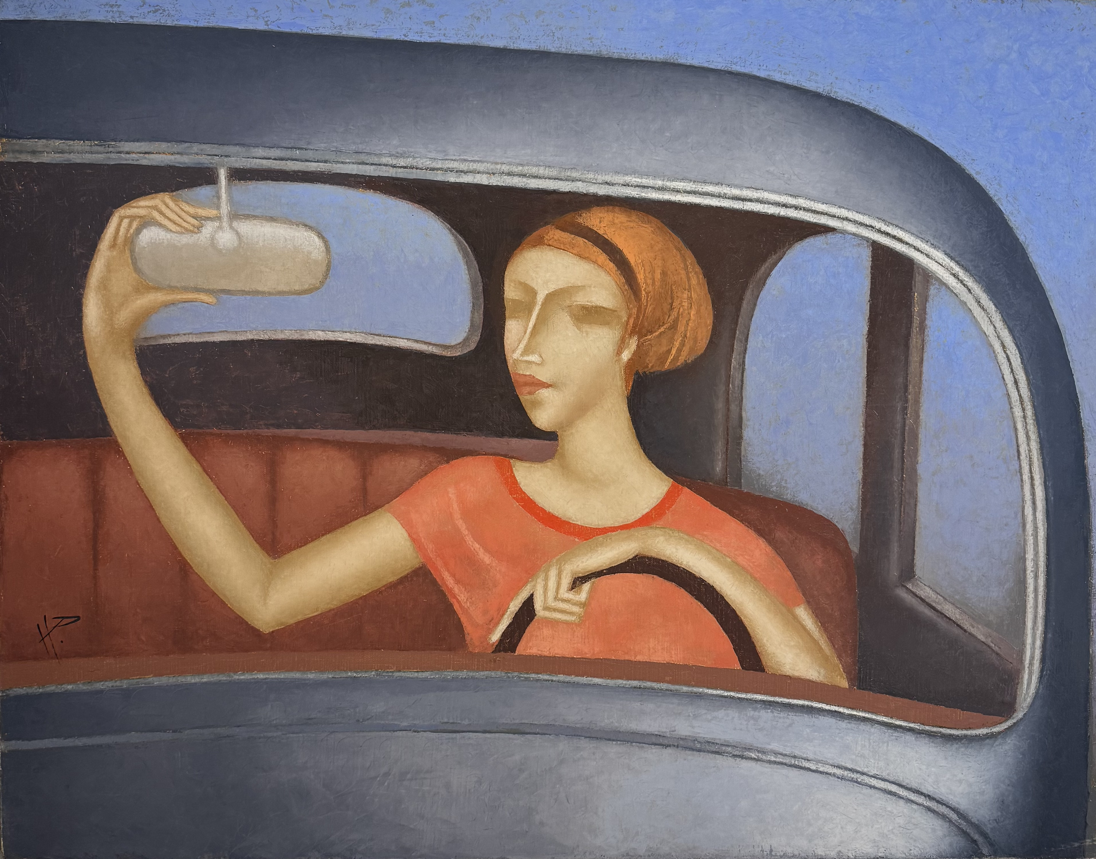 Nikolay Reznichenko’s “Departure,” as seen in this image (of a woman in a car), takes on a completely different meaning from the previous iteration. Instead of a somber indoor scene, this painting offers a more dynamic and stylized portrayal of a woman embarking on a journey, hinting at themes of independence, movement, and the open road.