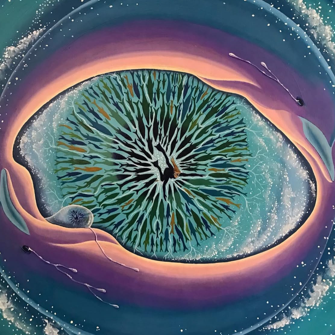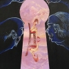 The painting "Mirage" takes us into a mysterious space of dreams and fantasies. Through the keyhole, a scene opens up before the viewer: a woman on a chair frozen in an elegant pose, and around her is a reflection in a pink haze of clouds, as if the whole world is dissolved in an illusion. On both sides of the keyhole we see mysterious silhouettes - like old men or observers whose faces peer intently inside. Delicate pink and purple shades smoothly flow into each other, creating a feeling of airiness and unreality. The painting is filled with symbols: the keyhole is a window into someone else's secret, the subconscious or into a dream world where everything is possible. The image of a woman is the personification of an elusive dream that cannot be held, everything that can only be sneakily glimpsed. The boundaries between the real and the imaginary are almost erased - the viewer, like the characters on both sides of the keyhole, becomes a participant in this game with reality. The artist creates a special atmosphere of mystery, inviting us to fantasize: where is the line between our thoughts and reality, what is reality and what is its mirage? This work leaves a subtle aftertaste and many questions that you will have to find answers to on your own.