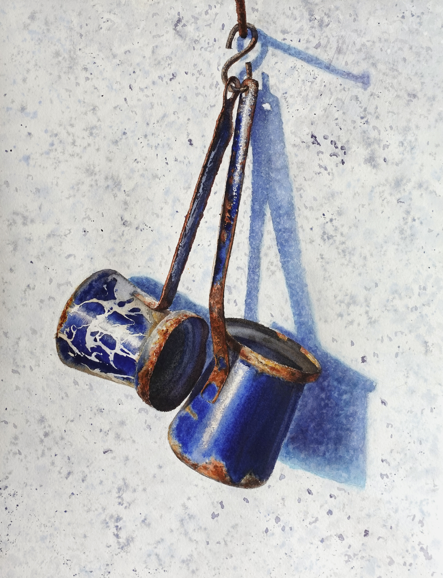 This work is about the past that lives on in objects. Once, these time-worn, rusted coffee pots witnessed warm family gatherings around the table. Friends and relatives would gather, pour coffee from them, share joys over dessert, argue, and laugh together. Now, they remain as a symbol of those moments—a fragile thread connecting us to memories of a happy past.