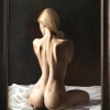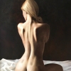 "Evening Light" is a subtle, soulful work that combines the beauty of the human body, the magic of natural light and the intimate sincerity of the moment. The painting depicts a female figure from the back, with gently outlined lines of the shoulders, spine and curves of the body. The light silky skin tone, subtly worked out using the oil technique, fills every detail with life and warmth.