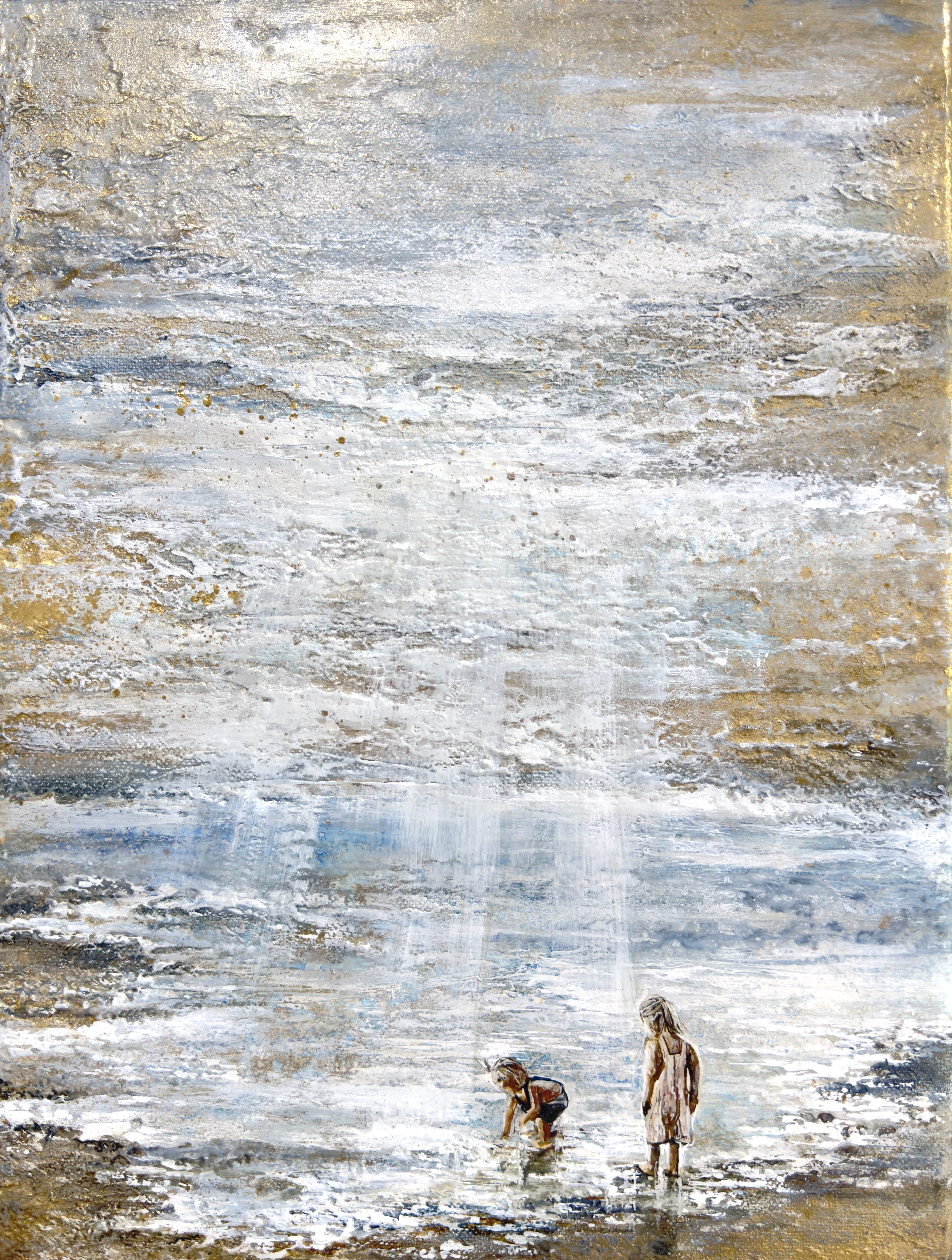 The technique of the work is very expressive: impasto brushstrokes literally build the architecture of the space, thin silver and gold reflections give the air a shimmering, heavenly glow. The scene seems almost meditative: the source is not only a stream from the outside world, but also an inner light that can manifest itself only through a person.