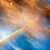 The upper part of the work is occupied by a celestial canvas, where shades of gold, pink and purple softly shimmer, creating the impression of a cosmic wind, a laminar movement of energies. To the left, a moon-shaped symbol can be guessed - a hint at the change of phases, cycles and renewal. This plot reinforces the idea: our whole life is a constant search, a choice of directions, a mission. The texture of the work is unusually rich: smooth strokes of acrylic flow into pasty layers of oil, individual sections shimmer, as if made of gold leaf. The golden code here is both literal and metaphorical: before us is the book of lives, a philosophy about how even one attempt can change our future. The organic connection of the human figure with the surrounding cosmic masses emphasizes: we are not just particles of the universe, but unique carriers of light energy and creative intent. This canvas is an invitation to trust your path, to move forward, because everyone has their own "code" in the labyrinth of the universe.