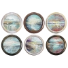 This project is presented as a series of miniature round compositions, each of which is an independent world enclosed in a circle. Six works (two groups of three) have a similar style, but reveal different states of nature and emotions. The canvases resemble the eye of sight, the surface of water or a window into another dimension.
