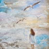 The technique, combining painterly softness with pronounced texture (likely impasto), gives the image tangibility, as if the viewer can feel the damp sea air and the warmth of this light.