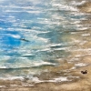 Ksenia Eliseeva's painting «Sea for two» is a meditative landscape conveying the vastness and fragility of human existence. From a bird's-eye view, one sees the endless azure expanse, the white foam of the surf, and the sandy shore. In this vast, almost abstract space, tiny details—a solitary sailboat and two figures on the shore—set a philosophical tone.