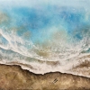 Картина Ксении Елисеевой «Долина нежных наслаждений» — это визуальная медитация, приглашающая зрителя ощутить дыхание океана. С высоты птичьего полета открывается береговая линия, где лазурная вода встречается с золотистым песком. Художница мастерски работает с фактурой: пена прибоя, написанная объемно и живо, кажется осязаемой, словно мы стоим на самом краю воды.