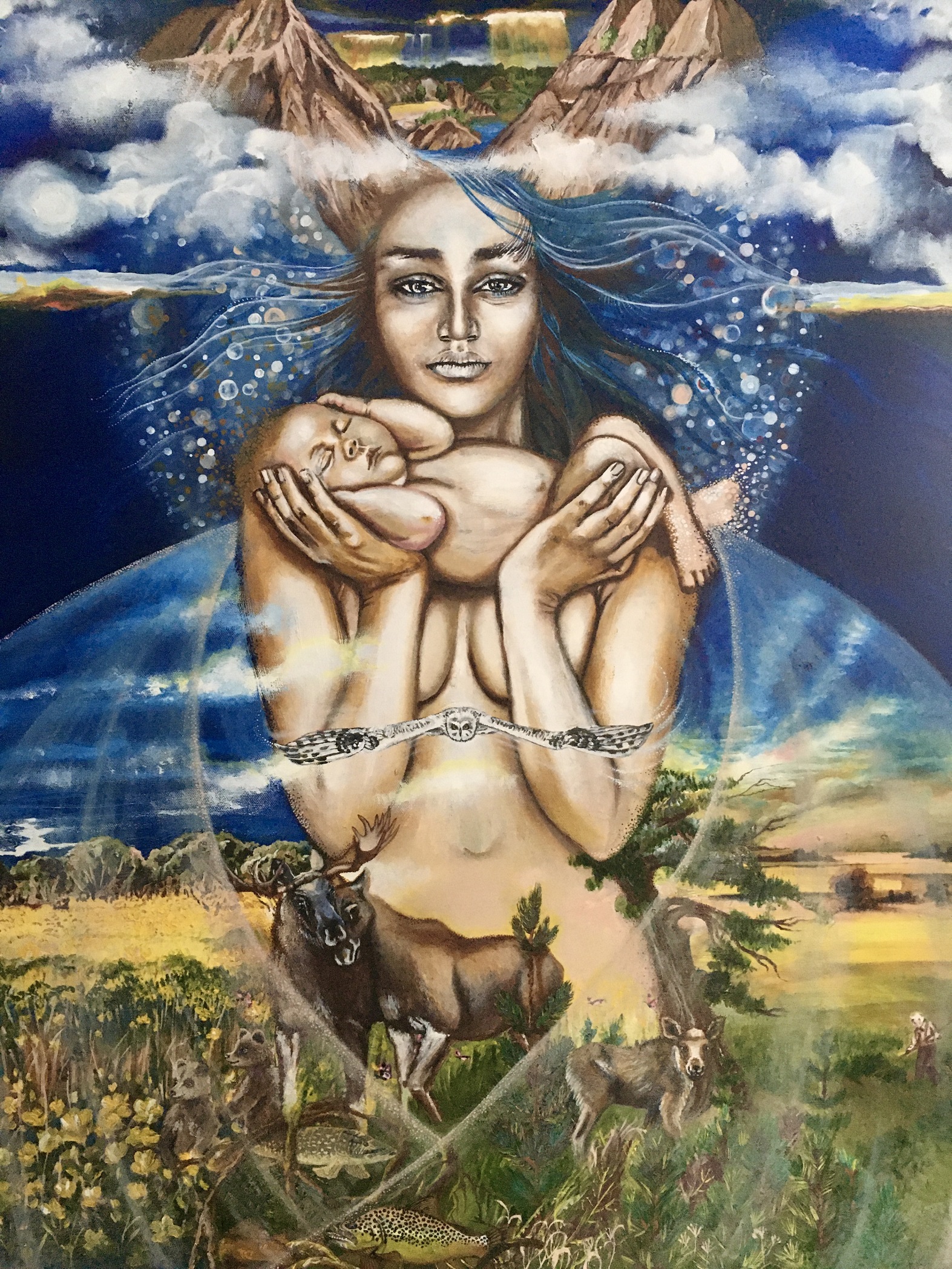 The painting fills the space with harmony, trust, kindness, generosity, wisdom of the ages, and peace.