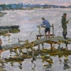 This original artwork "Volga's Fishmen." was created by the contemporary Russian artist Nikolay Lukashuk and is available for sale online.