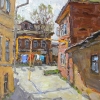 The painting "Old House on Pionerskaya Street" is the artist's poetic view of the Russian province, the originality and charm of bygone eras. The spaciousness of the courtyard is surrounded by two solid brick houses, slanted by time, once built by the kind hands of craftsmen. Against the backdrop of the fresh spring sky and the first leaves of the trees, the houses acquire a special warmth and familiar softness. The central place is occupied by an empty courtyard with arches, a paved path and a familiar yellow gas pipe. Laundry dries on the line, enlivening the space and emphasizing the caring presence of families for whom these walls are home. The windows of the houses glow with the azure of the reflected sky and are filled with life. In other windows, you can see reflections of trees and silhouettes of people. The composition exudes kindness, rootedness, a calmly flowing life, where every day is spent in the circle of neighbors, household chores and small events that remain in warm memory forever. The artist fascinates with a light play of light, rich brushstrokes and accents, giving the viewer a feeling of sincere comfort and native yards, where even the old age of the buildings becomes a continuation of family history and a metaphor for a reliable shelter for all time.