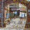In the painting "Old Yard on Alexei Tolstoy Street" the viewer sees a corner of Samara filled with a special atmosphere of coziness, leisurely pace and the memory of time. A curved brick archway leads into the courtyard, where life flows quietly and measuredly. Soft daylight penetrates through the arch, illuminating a whitewashed path strewn with the first yellow leaves. In the foreground, a bench by the wall and a small green shed can be discerned, and in the center of the scene - freshly washed linen floating in the warm autumn air. The presence of a person is felt through a figure bent over his daily concerns. The surfaces of the houses, every careless line, every scratch on the bricks - keep the imprints of the lives of several generations. Yellow fragments of foliage, thoughtful shadows and simple furniture emphasize the atmosphere of a way of life that is passing, but not lost. The composition is based on the feeling of coziness and security that are typical of old courtyards that served as a living center for neighbors to communicate, children's games, household chores and simple joys. The work is filled with light sadness and nostalgia, forcing you to slow down, remember your childhood and the fresh smell of autumn in the courtyard. It is such places that preserve the living memory of the city, its real, not imaginary soul, connected with the house, care and simple human dreams.
