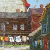 The painting "Old Yard" reveals all the charm of the quiet, slightly touching everyday life of old city blocks. Wooden and brick houses cozily coexist on the canvas, traces of time are visible on their walls, and snow-white and multi-colored sheets and towels are playing on the rope between them, fluttering in the wind. There are almost no people in the yard - all attention is focused on the chiaroscuro, the play of light on the log walls, the green lawn near the porch. High roofs, faded shutters and antennas against the background of a clear sky create a feeling of coziness and a real home atmosphere. Some details - for example, old buckets or a forgotten toy - give the scene a touching novelty and a memory of childhood. The painting reminds us that the simple present can be filled with meaning and warmth no less than the most significant events - if you look at the world with open eyes.
