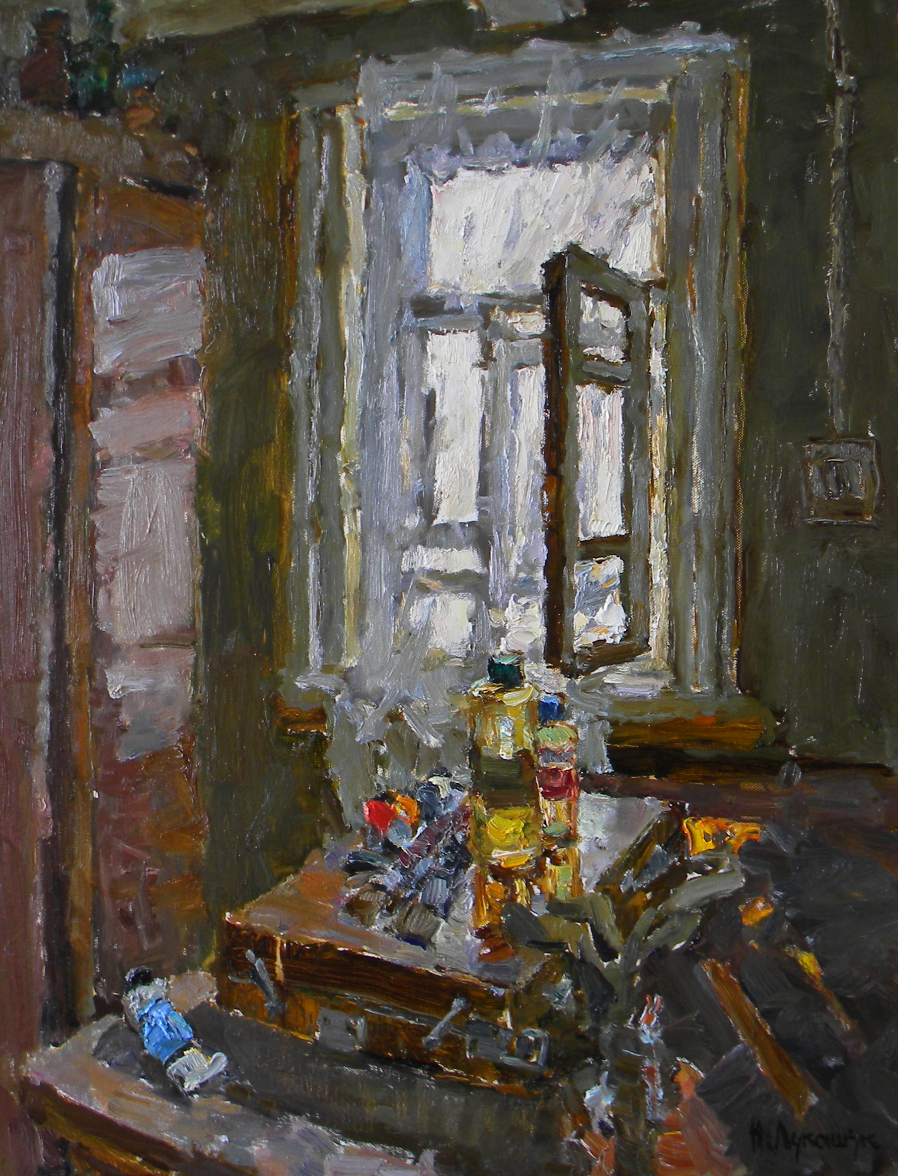 This original artwork "The Morning before the Etudes." was created by the contemporary Russian artist Nikolay Lukashuk and is available for sale online.