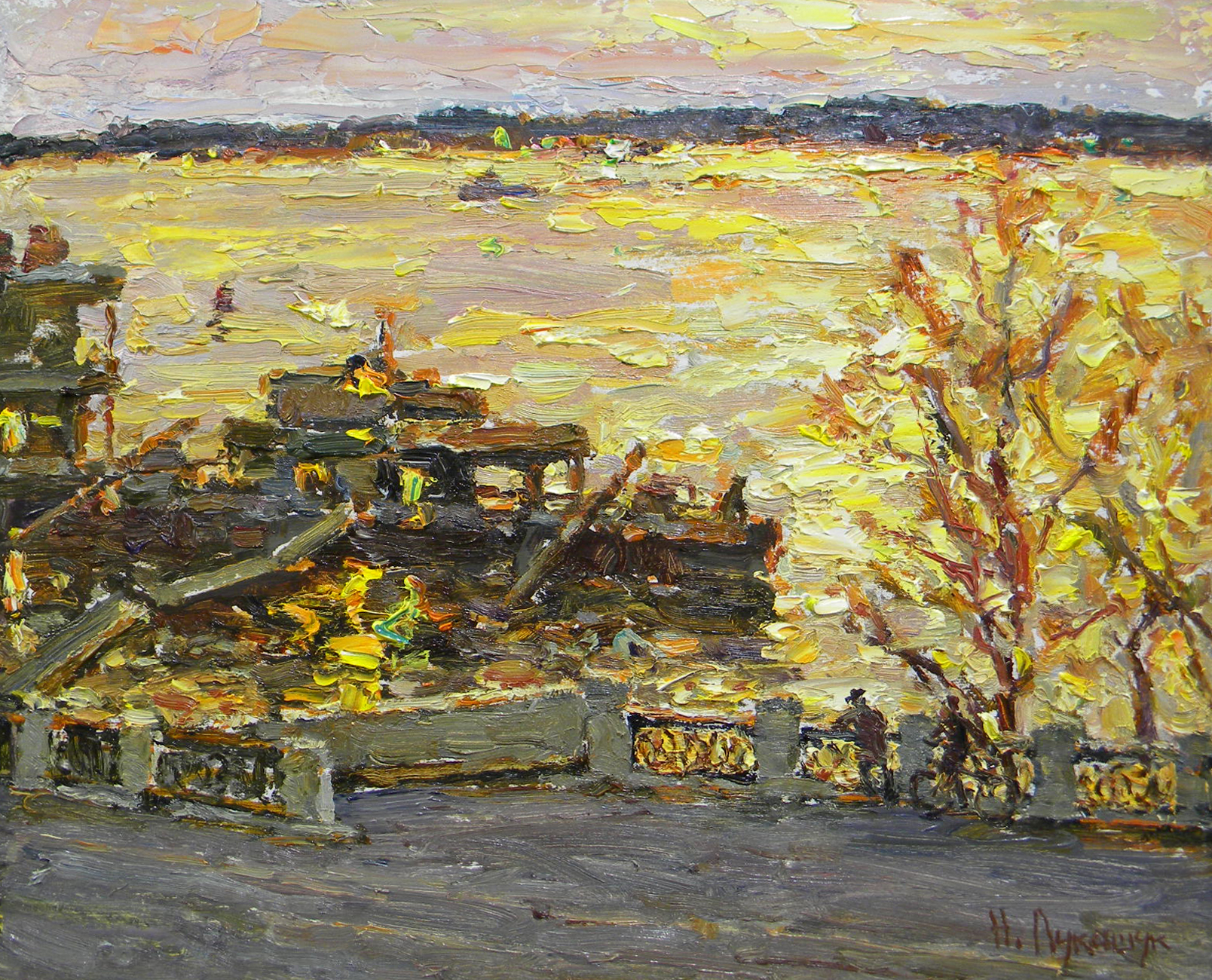 This original artwork "The Evening at the Volga River." was created by the contemporary Russian artist Nikolay Lukashuk and is available for sale online.