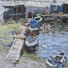 This original artwork "The Boat Station in Tsarevshchyna." was created by the contemporary Russian artist Nikolay Lukashuk and is available for sale online.