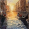 "Venice Gondolas" is a romantic ode to one of the most mysterious cities in the world. The focus is on the picturesque Venice canal and elegant gondolas bobbing on the water in the golden light of the setting sun. The artist subtly conveyed not only the architectural splendor of the ancient buildings along the banks, but also the enchanting atmosphere of the city, where every evening is full of enchanting light and quiet music.