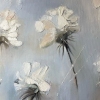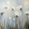 Thin stems and translucent petals seem to dissolve in space, while each head seems to be about to explode in the wind and scatter into hundreds of invisible seeds. The lightness of the brushstroke and the discreet color palette create a special feeling of silence, freshness, and slight coolness. The work seems to capture that very “second before” — before saying goodbye to spring, before breaking away from the earth, before a dream comes true.