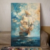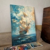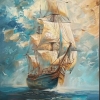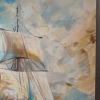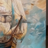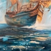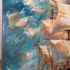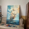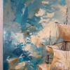 The painting "Fresh wind" masterfully embodies the spirit of freedom and travel. The sea opens up before the viewer, on the waves of which a tall sailboat proudly floats, filled with a favorable fresh wind. Thanks to the texture paste, the sails seem to acquire a real relief - they swell, as if alive, catching powerful air currents. The sky plays with rich shades of blue and aquamarine, the clouds scatter, emphasizing the dynamism and movement of the composition. Snow-white birds accompany the ship, enhancing the feeling of endless flight, lightness of being and dreams of distant shores. The ship - a symbol of hope, fearless aspiration and thirst for discovery - is directed towards the horizon, and the golden-amber sun, breaking through the clouds, envelops the scene with warm light.