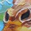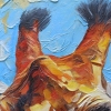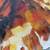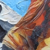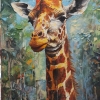 "Giraffe in the texture of feelings" is a stunning work that embodies the magic of wild nature through the prism of emotional and tactile perception. The central place in the composition is occupied by a giraffe, depicted in close-up - its intelligent, kind eyes are directed straight at the viewer, inviting to a quiet, personal dialogue. Thanks to the use of voluminous texture paste and a bright palette, the image is filled with a special sense of liveliness: the strokes are convex, pasty, as if the surface of the painting can be felt with your fingers.