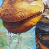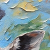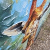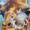 The background is made in rich green, blue and golden tones - it not only conveys the feeling of the savannah, but also seems to reflect the "inner world" of the animal. Drops, streaks, relief lines hint at emotions, impulses, experiences - the giraffe becomes not just a representative of the animal world, but a beautiful symbol of sincerity, softness, openness of feelings.