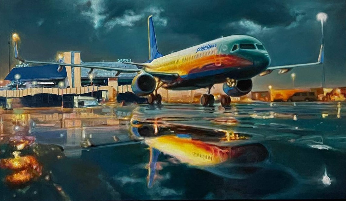 This painting is my personal journey into the world of light, color and emotions, captured in oil on canvas. An airplane against the backdrop of Sochi airport and a warm sunset is a symbol of hope, new horizons and endless freedom. When creating this canvas, I invested incredible strength and time, every movement of the brush was accompanied by deep emotions and the most subtle emotional feelings.