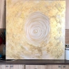 The painting "The Law of Samsara" is a philosophical reflection on the eternal cycle of life, self-development and reincarnation. The central element is a spiral, like a whirlpool or tree rings, fascinates with its silence. The use of gold and light beige paints with a gold leaf effect creates a sense of sacred, unattainable, almost mysterious meaning hidden in the single rotation of the Universe. Light overflows and smooth transitions of brushstrokes remind us of the infinity of nature, the reincarnation of desires, experiences and actions. There are no rigid frames and angles here - only a soft flow of being into a new state.