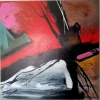 The abstract painting "Neon Traverse" is a dynamic and expressive flow of color and form, combining the energy of the city and the spontaneous play of lines. The composition is dominated by dense neon shades: rich red and pink colors intertwine with cool azure spots, creating the effect of movement, as if the viewer finds himself in the space of urban neon, where light and shadow form a single organism. In the center of the work is the intersection of light streams, contrasting dark and light strokes, as an allusion to city streets, rushing trains and the play of lanterns in the night.