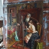 The title of the painting, “Reproduction,” indicates the learning process, where a young artist copies the work of a master, learning the basics of painting and adopting his experience. However, this is not just copying, but an attempt to understand and feel the artist’s intention, his technique, and style. It’s the transmission of not only skills, but also a love for art.