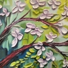 A special feature of the painting are the snow-white flowers that seem to soar in the air. The artist uses pure, bright colors to create a feeling of freshness and tenderness. The flowers seem to be symbols of spring, renewal, and hope, reminding us that after winter there is always a time of flowering and rebirth.