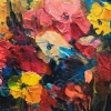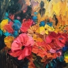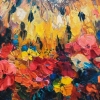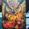 A special feature of the painting is the abundance of flowers surrounding the bird. Red, orange, yellow buds seem to envelop the owl, creating a feeling of warmth and coziness. The contrast between the wise and stern gaze of the owl and the delicate petals of the flowers creates an unusual, memorable effect.
