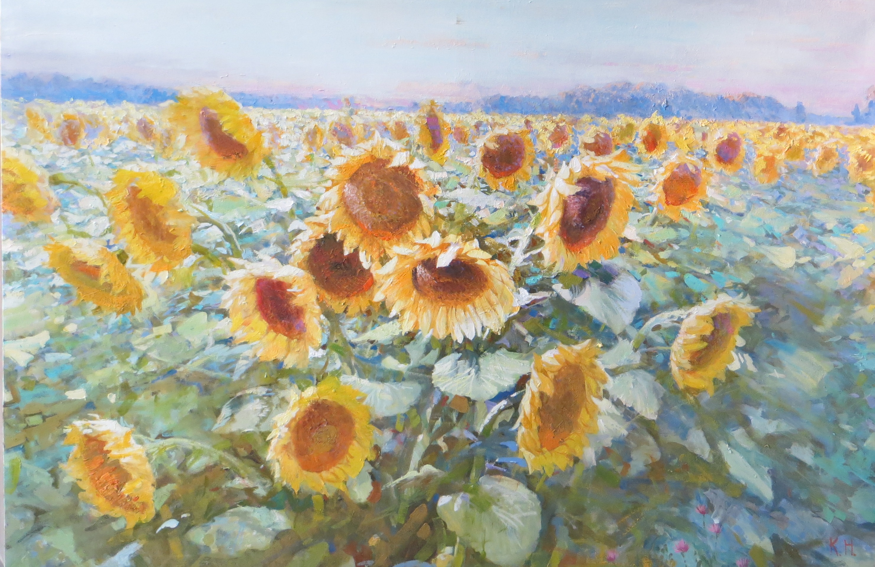 This original artwork "Sunflowers" was created by the contemporary Russian master Nikolay Komarov and is available for sale online.
