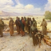 The artist masterfully conveyed the atmosphere of movement, using a warm palette and soft light, creating a sense of a spiritual journey. The landscape, executed with detailed elaboration, emphasizes the contrast between the harsh desert terrain and the greatness of the human spirit. The painting feels deep symbolism, reminiscent of the approach to an important stage in the life of Jesus and his disciples.