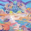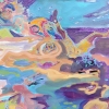 Nadya Prades’ painting “Karacus Marakus. Under the Water” is a kaleidoscope of colors and forms, immersing the viewer in a fantastic underwater world full of energy, movement, and surreal images. The artist uses a bright, psychedelic palette and expressive brushwork to create a sense of depth, mystery, and unlimited possibilities for the imagination.
