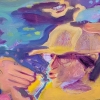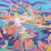 The color palette of the painting is striking in its diversity and richness. Bright, contrasting colors are used: blue, green, yellow, orange, purple, pink. These colors, often combined in unexpected ways, create a feeling of unreality and a psychedelic effect. The artist is not afraid to use dissonant combinations, which makes the painting even more expressive and memorable.
