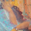 A special feature of the painting is the masterful use of patterns and textures. The fabrics surrounding the woman are executed in bright, but muted tones with the use of complex ornaments characteristic of oriental textiles. These patterns seem to absorb her, creating a sense of “mimicry,” dissolution in the environment.
