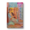 At the center of attention of the painting is the figure of a woman sitting among the fabrics. Her pose, slightly bent and thoughtful, conveys a sense of fatigue and reflection. The face, although not drawn in detail, betrays sophistication and a certain mystery, as if she knows something that we do not.