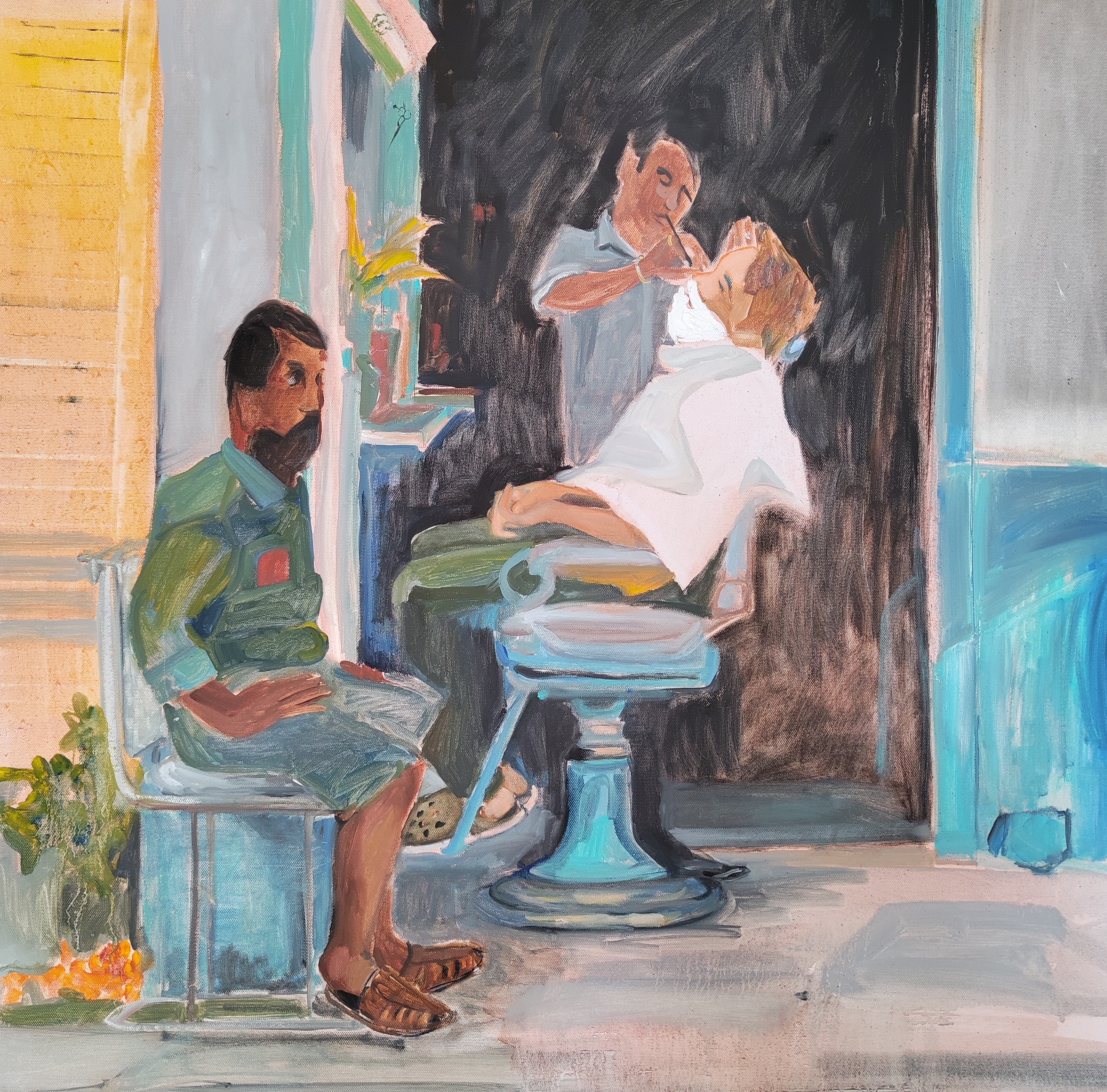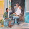 This painting can be hung on the wall of your apartment, house, office, restaurant, or hotel and will be a wonderful decoration for your interior. You can buy online the artwork “Barber shop” measuring 70 x 70 cm with secure shipping to your location.