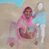 A special feature of the painting is the presence of a second figure standing next to the woman. This figure, executed in more muted, pastel tones, is apparently a tourist or a resident of a Western country. Her face is practically not detailed, which makes her image more generalized and symbolic.