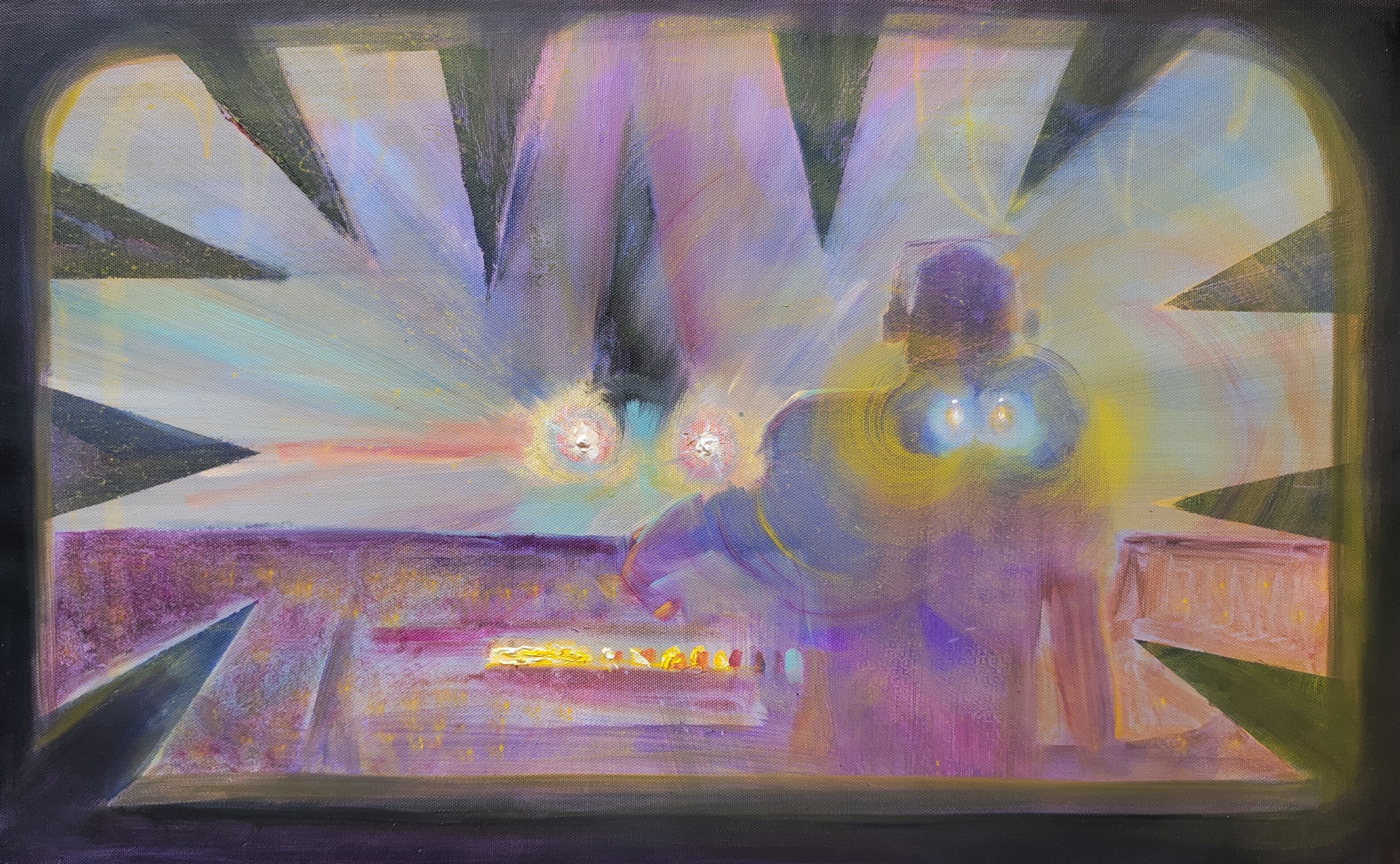 “Karacus Marakus IX. Headlights” is a painting about control, about power, about the mysterious energies that move the world. It prompts reflection on who we are, where we are going, and what awaits us ahead in this pulsating, geometric abyss. It is a captivating and slightly frightening journey into a world of images and sensations created by Nadya Prades’ imagination.