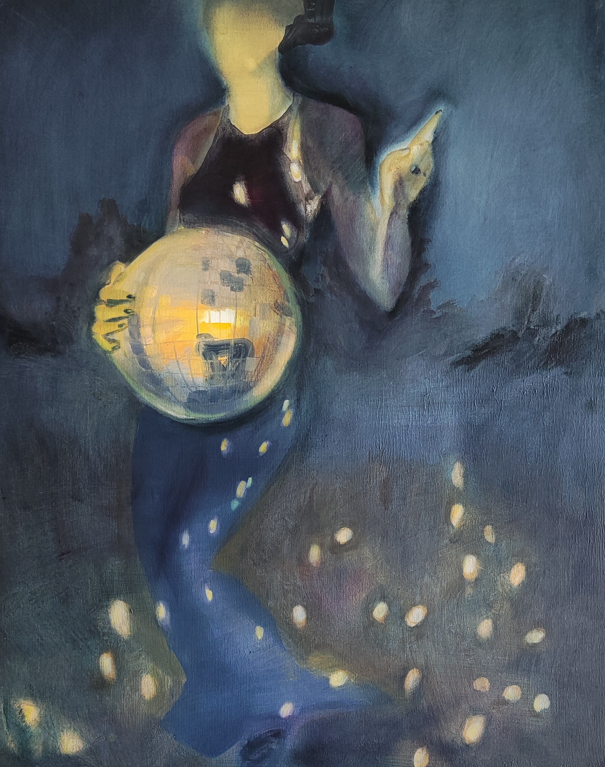 Nadya Prades’ painting “Girl with a Ball” is a mesmerizing sight, embodying the poetry of light, mystery, and, perhaps, hope. The artist uses a complex yet harmonious color palette and an unusual technique to create an atmosphere of magic, dreaminess, and a light enigma, as if we found ourselves in a fairytale world.