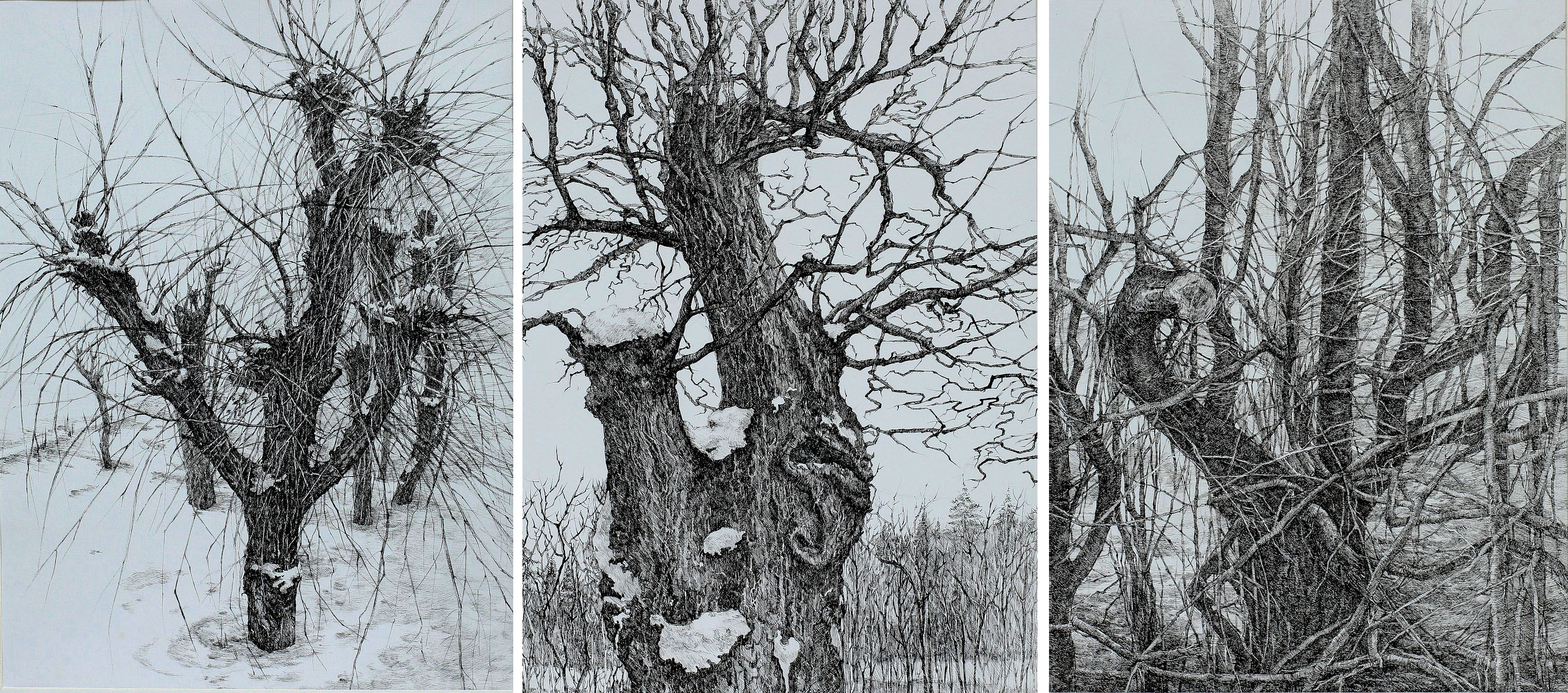 I am attracted to the aesthetics of dry trees, the lace of branches, and the complex structures that arise from growth.